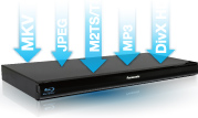 通过松下蓝光视盘机配备的USB接口,不仅可以播放以往产品兼容的MP3乐曲和JPEG图片,还可以支持存储媒介中的,mkv、avi/,divx、以及.m2ts/.ts等高清格式的影像播放,并可支持最大2TB大容量的移动硬盘。(*NTFS文件系统容量最高为2TB:FAT文件系统容量最高为128GB)